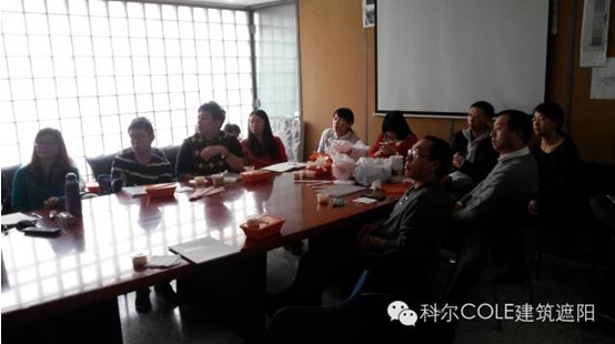 會上,COLE科爾市場部經理和技術部經理和與會的20多位設計師一起分享了COLE科爾建筑遮陽產品和技術,以及成功的建筑遮陽調光工程案例;共同探討了建筑遮陽在建筑設計中對建筑藝術風格和建筑節能的影響,還有對綠色建筑評定及LEED認證的貢獻等。與會雙方就產品選擇,安裝節點及外墻結構等問題展開了熱烈討論。建筑遮陽和建筑設計息息相關,特別是建筑外遮陽越早接入建筑設計工作中,對建筑的整體外觀風格和建筑遮陽的結構安全,后期施工維護越有利。