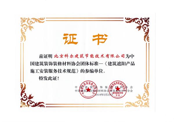 《建筑遮陽產品施工安裝服務技術規范》評價標準作為協會資質轉化國家認證的重要依據,關系到行業每一家遮陽組裝型企業,此評價標準發布后,國檢集團將向國家認證認可監督管理委員會遞交服務認證申請,在協會的引領下,全行業企業的支持下,建筑遮陽行業規范發展將迎來真正的“拐點”。本評價標準由中國建筑裝飾裝修材料協會建筑遮陽材料分會、中國建材檢驗認證集團股份有限公司(簡稱國檢集團)聯合主編。