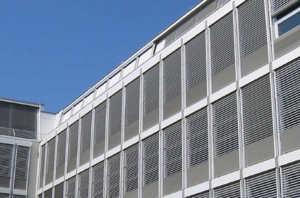 戶外金屬百葉簾整體可以收起、展開,金屬簾片可靈活調(diào)整翻轉(zhuǎn)角度,以決定光照的吸收及阻隔,充分利用自然光線的同時(shí)避免