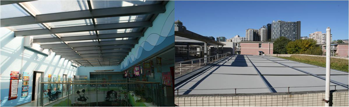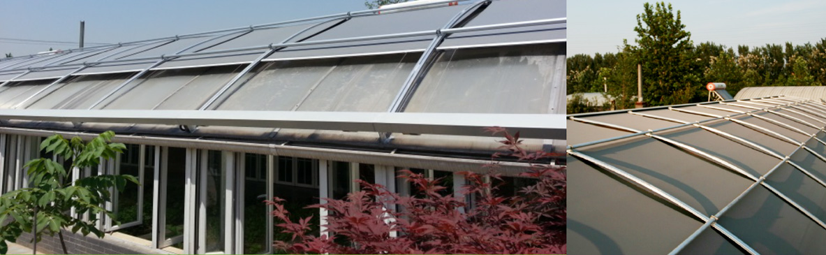 夜晚,展開天棚簾,減少室內溫度通過采光頂向外傳熱,從而減少采暖用能。